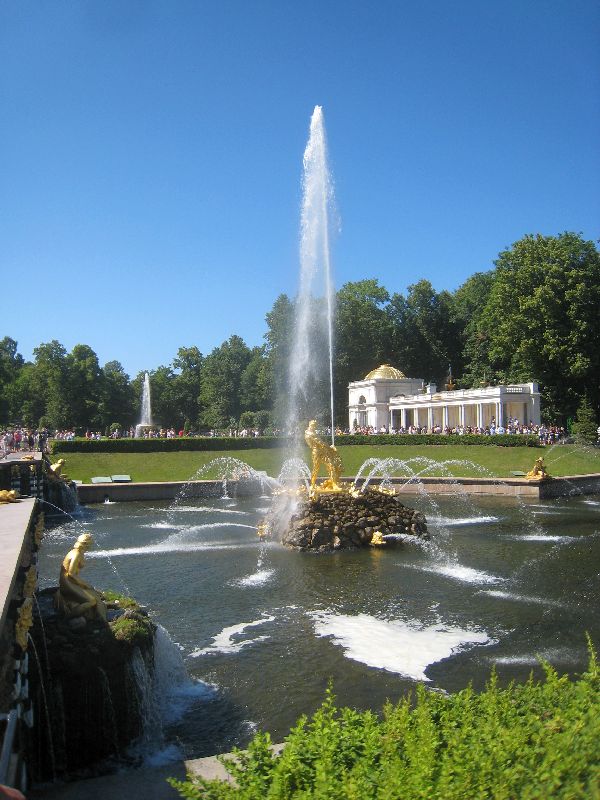 Emilee and I near a statue with a broken pot in the gardens of Catherine Palace
